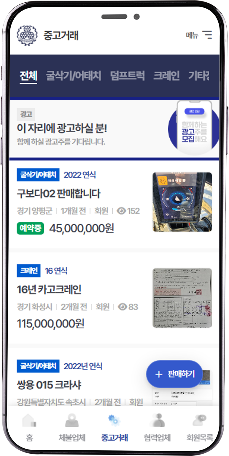 사업자번호 | 220-82-70902 대표자성명 | 김재일 소재지 | 경기도 파주시 탄현면 엘지로 625-2, 2층 Copyright ⓒ (사)건설기계개별연명사업자협의회. All rights reserved.