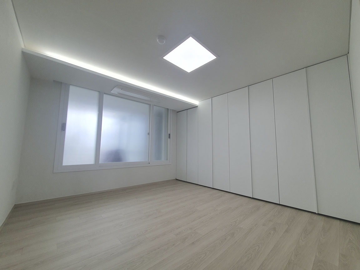 높이 제약이 있는 구조에 대응해 간접조명박스를 계획하고, 에어컨 본체 및 배관을 비가시화(非可視化)함으로써 돌출 요소를 효과적으로 감춤. 천장의 숨은 디테일까지 고려한 마감 설계는 공간의 정밀도와 시각적 완성도를 동시에 충족할 수 있음.