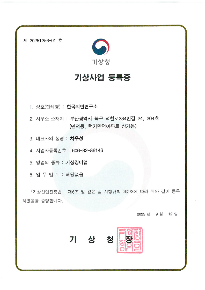 - 2025년 09월 : 기상장비업 등록