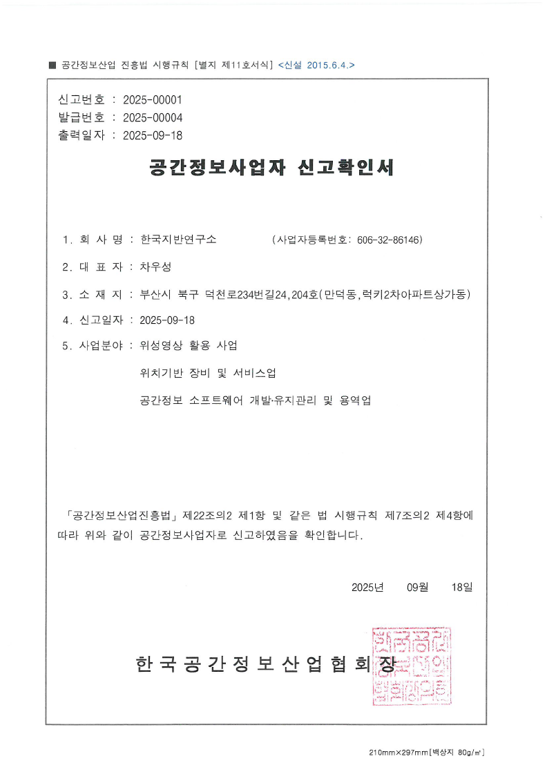 - 2025년 09월 : 공간정보사업자 등록