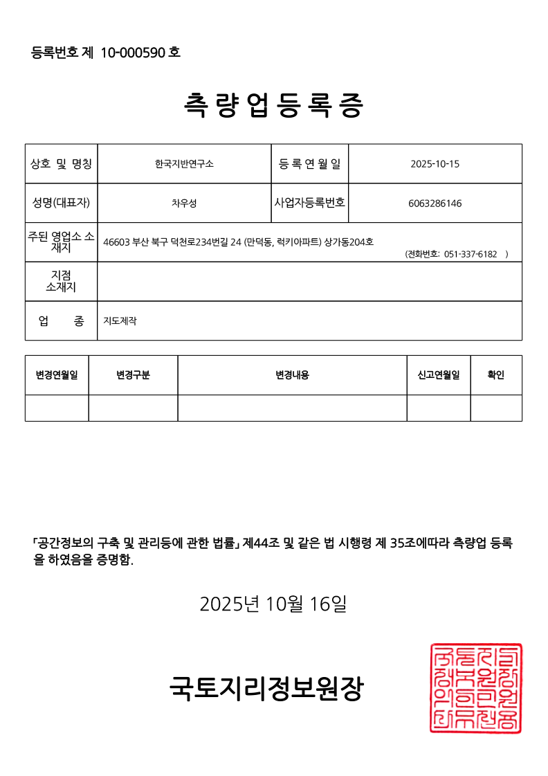 - 2025년 10월 : 측량업(지도제작) 등록