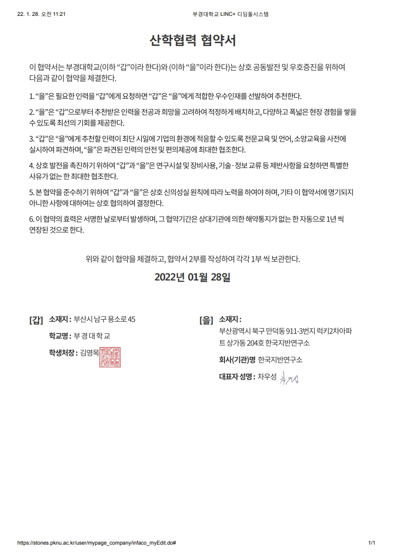 - 2011년 11월 : 부경대학교 MOU 체결
