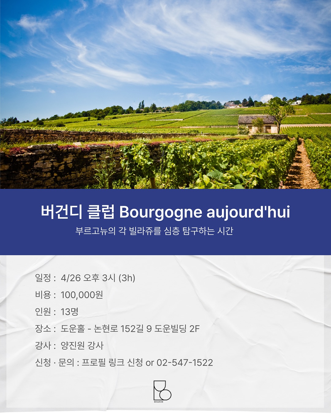 4/26 부르고뉴 와인 클래스 OPEN! ✨
