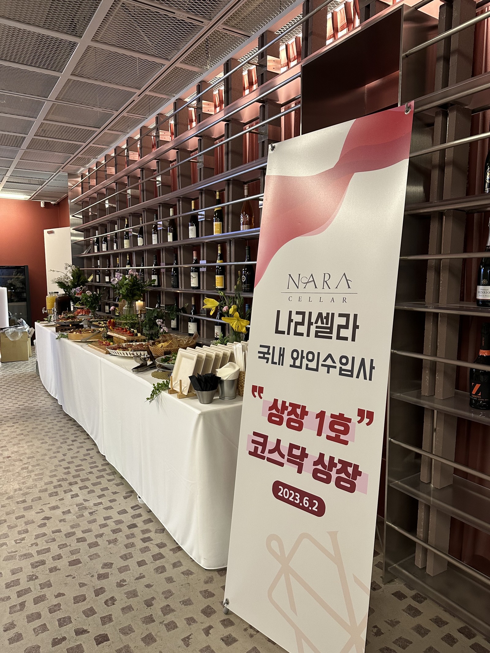국내 1호! 와인 유통 상장사, 나라셀라 페이지 정보 작성자 운영자 작성일 조회487회 관련링크 목록 본문 2023. 6. 2 (금) 나라셀라가 단순히 와인을 공급하는 수입사를 넘어 와인 문화를 선도하는 기업으로한 단계 더 도약할 채비를 마치며 6월 2일 와인 관련 기업으로는 최초로 코스닥 상장을 하면서국내 1호 와인 유통 상장사가 되었답니다:) 축배를 들어야 하는 즐거운 날, 모든 직원분들이 함께 즐기실 수 있도록 도운빌딩에서는다양한 이벤트들과 함께 상장식 축하 파티가 진행되었는데요, 즐거웠던 상장식 당일 사진! 모두 확인해 보세요 목록