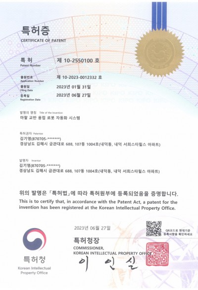 특허증(마찰 교반 용접 로봇 자동화 시스템)