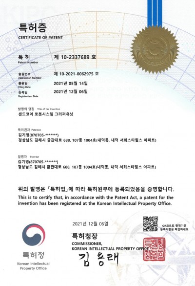 특허증(샌드코어 로봇시스템 그리퍼유닛)